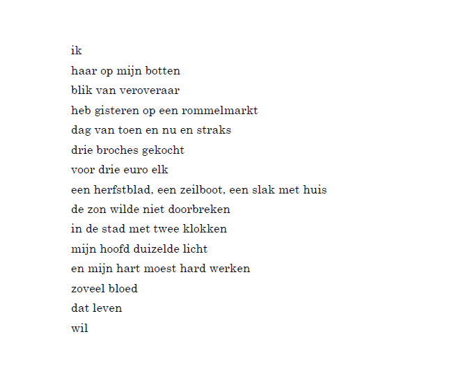 In vijf vormvaste gedichten -sonnetten, maar dan anders- wordt een crisis bezworen. Niet meer verkrijgbaar.
